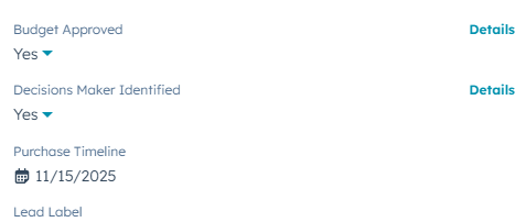 Display these properties prominently on the Lead record sidebar or a dedicated “Qualification Panel.”